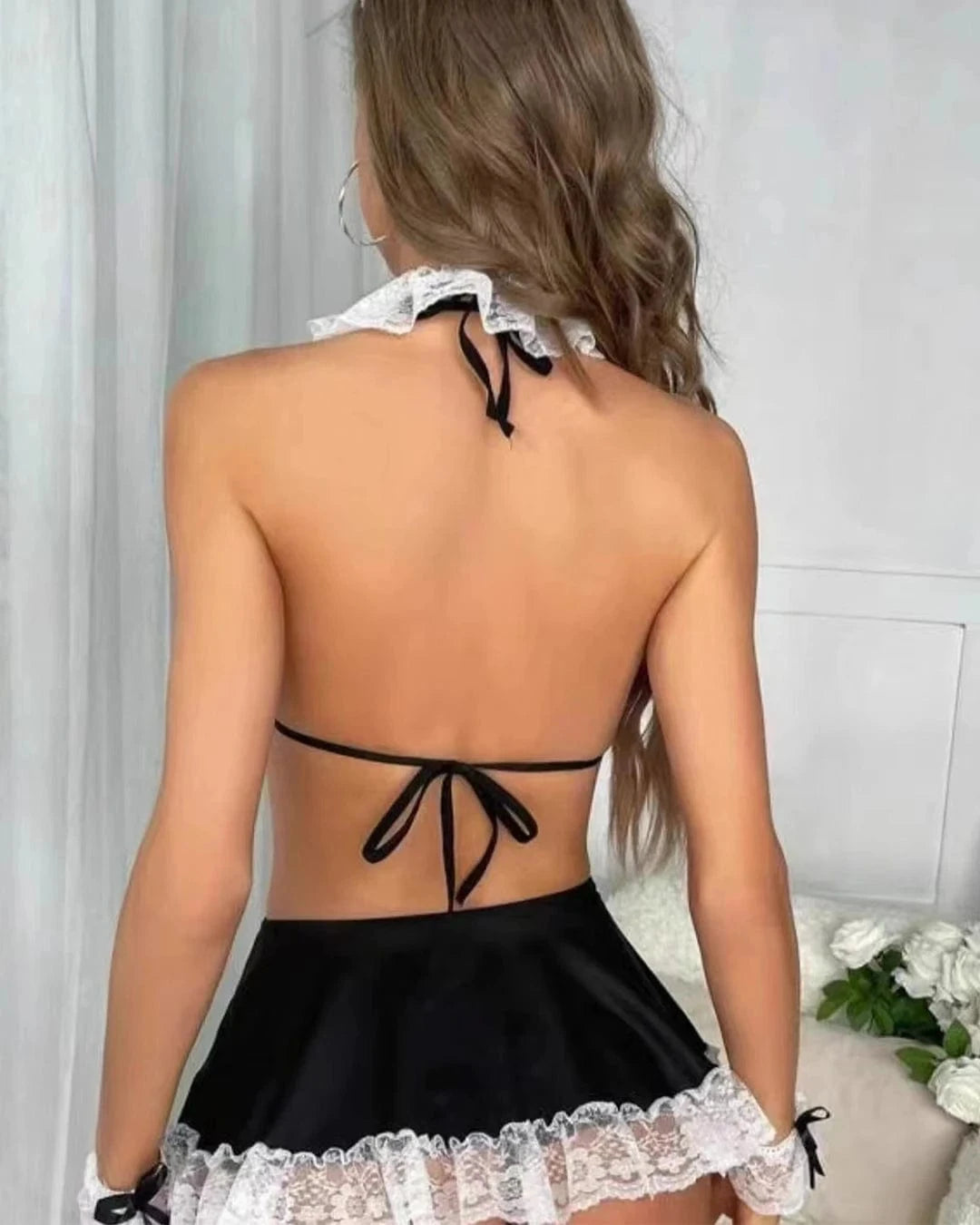 - Komplet: czepek, chocker, biustonosz, spódniczka, majtki
