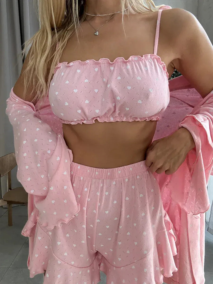 - Komplet: top, szorty- Szorty z wysokim stanem - Top na ramiączkach - Motyw serduszek - Odzież domowa - Materiał: Bawełna, Poliester