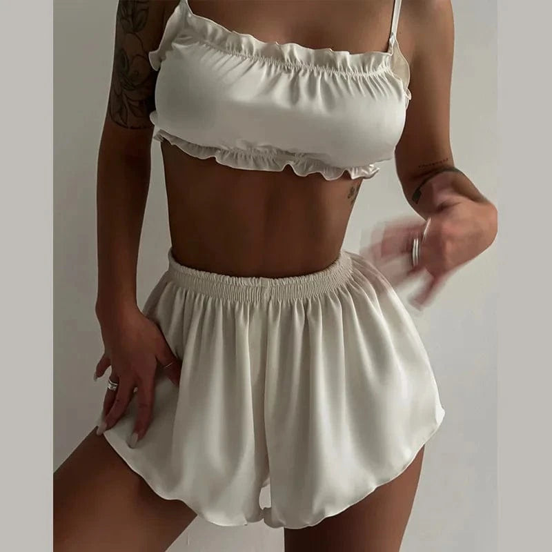Satynowa biała piżama